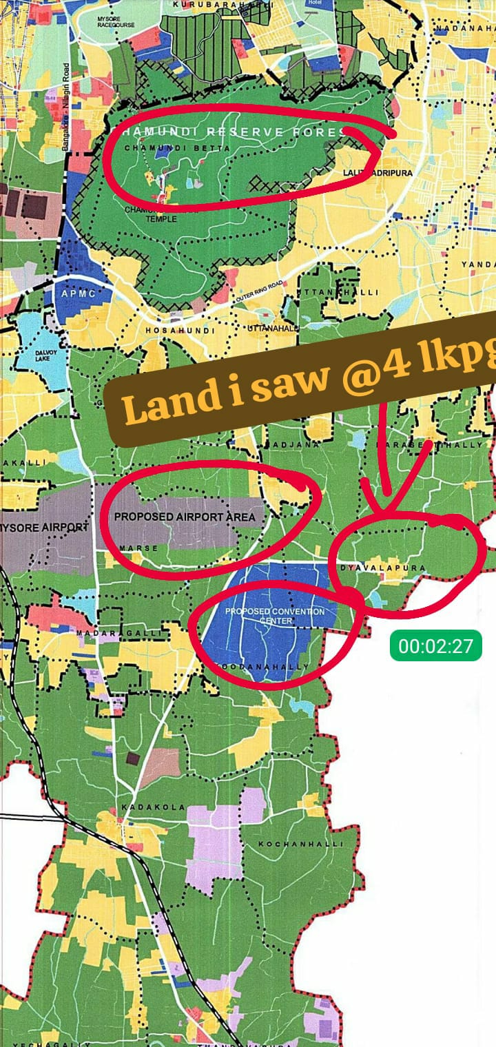 As per map there is airport expansion to take place south west of mysuru . It could also be a risk if government acquires our land at say 2 lpg and we purchase at 4lpg. Need to be careful.